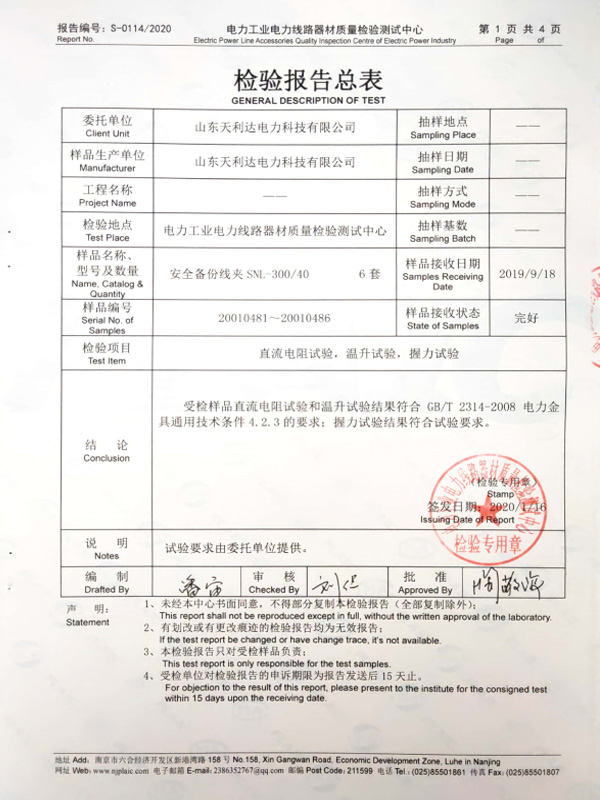 安全备份线夹检验报告